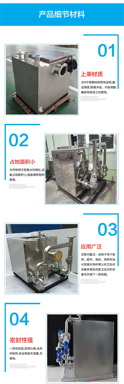 污水提升器實質上是泵類的產品,其基本工作原理是在污水進入到提升器水箱以后,再利用泵賦予污水能量,使污水經過提升器排水口時具有適宜的速度,從而使污水能上升到所需要的高度,然后順利到達排污管,實現地下室污水排放的目的。
